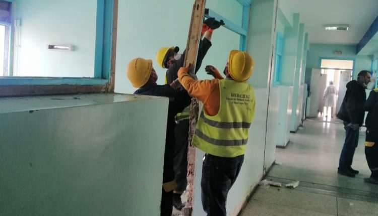 في إطار التدابير الإحترازية من أجل إحتواء ومعالجة المصابين المحتملين بفيروس كورونا ، أطلق المجمع الشريف للفوسفاط موقع أسفي ، اليوم الأربعاء أشغال إصلاح وتأهيل قسمي طب الرجال وطب النساء داخل مستشفى محمد الخامس بآسفي .