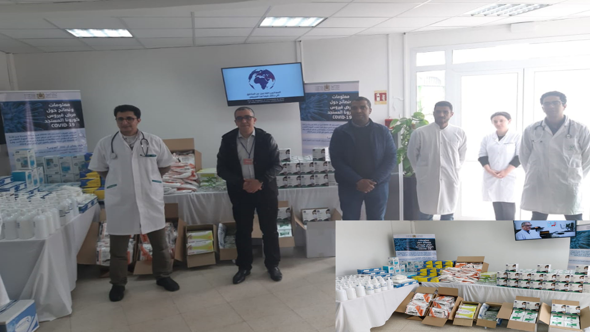 وحضر عملية تسليم المواد الطبية كل من المندوب الإقليمي لوزارة الصحة بآسفي وعدد من الأطر الطبية وشملت مواد تعقيم وألبسة وقائية ومعدات طبية خاصة بمواجهة الأوبئة كفيروس كوفيد 19 .