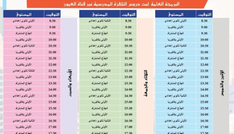 قناة العيون ابتداء من يوم غد الثلاثاء 24 مارس 2020 من الساعة الثامنة والنصف صباحا الى الساعة السابعة مساء .