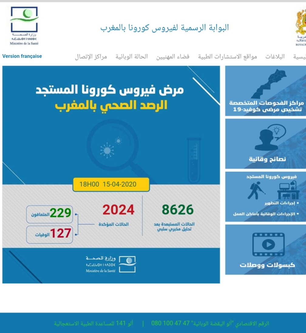كما أعلنت الوزارة عن ارتفاع عدد الوفيات الى 127 حالة وفاة ، فيما سجلت 229 حالة شفاء ، وذلك الى حدود الساعة السادسة من مساء اليوم الأربعاء 15 أبريل الجاري .