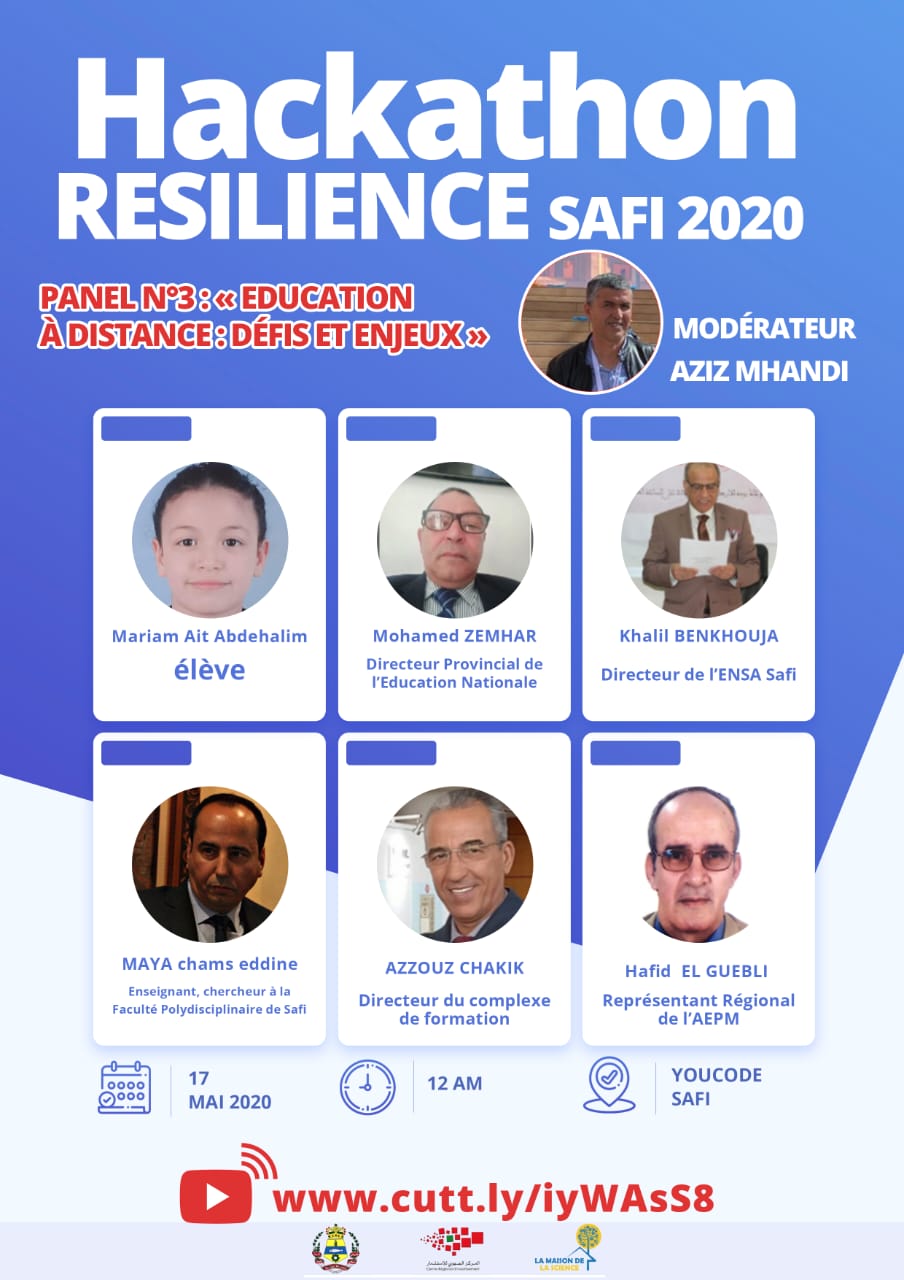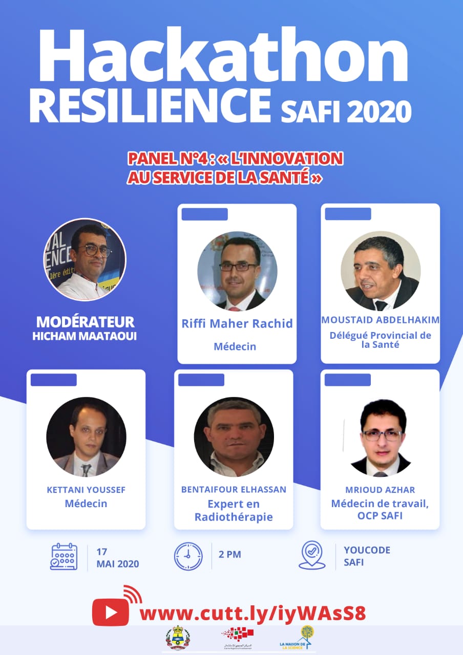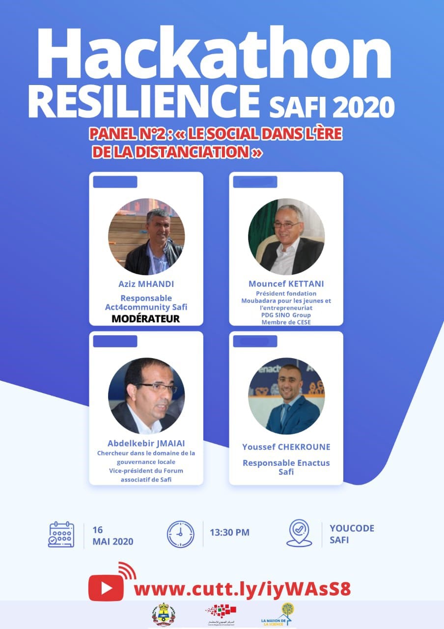في إطار المبادرات التطوعية والمواطنة، الواعية بتداعيات الأزمة الصحية الراهنة على النسيج الاقتصادي الوطني بصفة عامة و المحلي بصفة خاصة، تقوم عمالة آسفي و المركز الجهوي للاستثمار مراكش- آسفي، بتعاون مع دار العلوم بأسفي، مبادرة Act4Comminuty، معهد Youcode،آسفي مبادرة، حوض آسفي، جمعية الصناع وأرباب المعامل بأسفي، مجموعةBC SKILLS ، اتحاد مقاولات المغرب بمراكش- آسفي و كذلك عدد من الشركاء المؤسساتيين والخواص، بتنظيم مسابقة التحدي الافتراضية آسفي 2020 تحت شعار: ” آسفي في مواجهة الأزمة : أي مستقبل ؟”، وذلك يومي 16 و 17 ماي 2020.