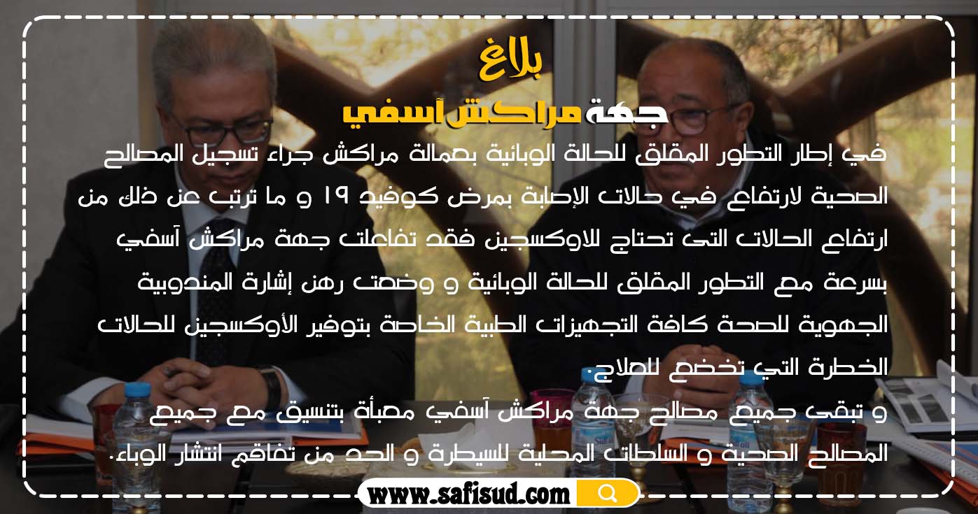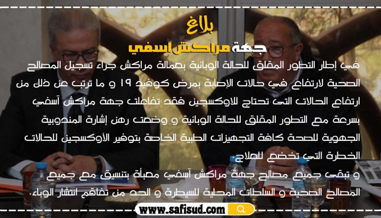 جهويا ووطنيامنوعات بلاغ جهة مراكش آسفي بواسطة safisud.com آخر تحديث أغسطس 20, 2020 0 0 شارك FacebookTwitterGoogle+ReddItWhatsAppPinterestالبريد الإلكتروني