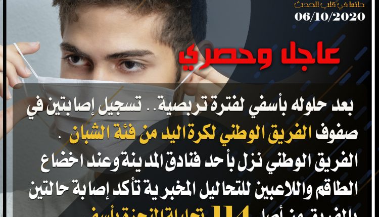 كشفت مصادر عليمة ل “أسفي جنوب” عن تسجيل تسجيل إصابتين في صفوف المنتخب الوطني لكرة اليد من فئة الشبان بعدحلوله في حصة تربصية بأسفي .