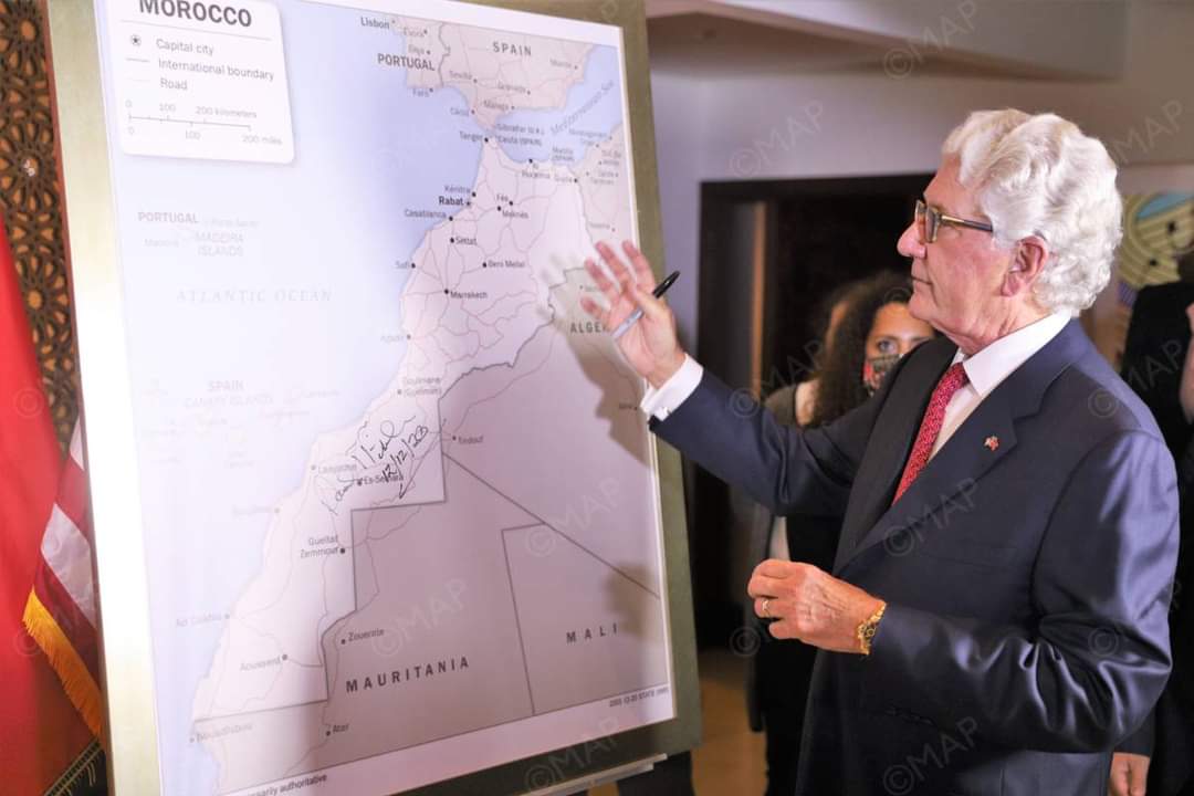 وقام السفير الأمريكي على إثر ذلك، بالتوقيع على الخريطة الكاملة للمغرب التي اعتمدتها الحكومة الأمريكية رسميا.