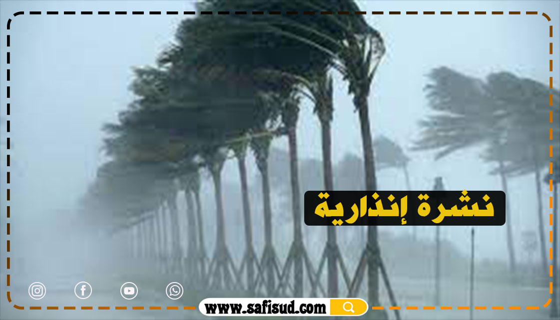 نشرة إنذارية ..رياح قوية بأسفي من 60 إلى 70 كلم في الساعة و أمطار رعدية قوية بعدد من مدن المملكة