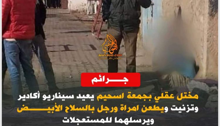 في حادث أعاد نفس سيناريو أحداث أكادير وتزنيت اعتدى مختل عقلي عصر اليوم الخميس بالسلاح الأبيض على امراة ورجل بالشارع العام بجمعة اسحيم وأرسلهما للمسعجلات في حالة خطيرة .