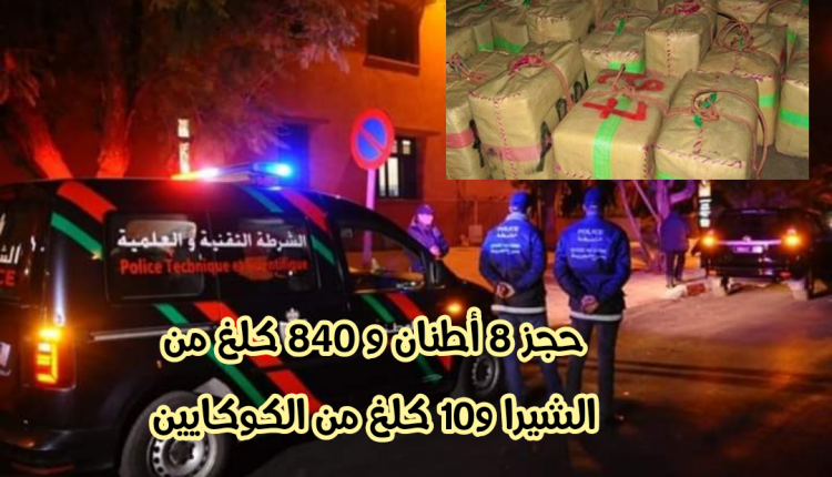 حجز ثمانية أطنان و840 كيلوغرام من مخدر الشيرا بمراكش و10 كليوغرامات من الكوكايين بالدار البيضاء