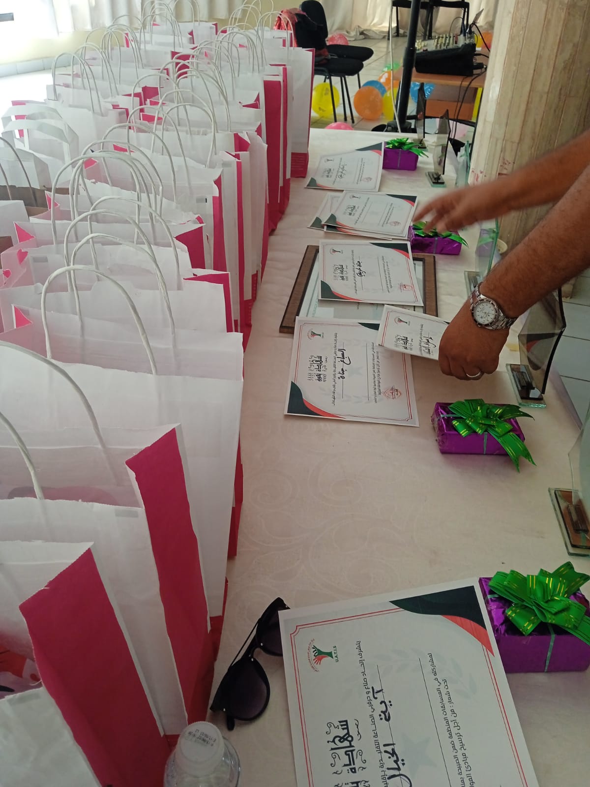 توزيع الهدايا على جميع الاطفال الحاضرين .