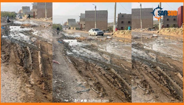 ساكنة سي عباس جنوب أسفي تستنكر الوضع الكارثي الذي أصبحت عليه الطريق جراء الأوحال والمياه العادمة وطالبت بإيفاذ لجنة عاجلة للوقوف على الوضع البيئي والصحي بالمنطقة
